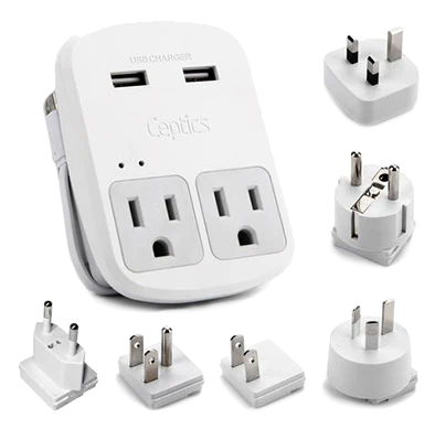 This travel volatage converter also features 4 USB ports to power your USB devices such as an iPhone, iPad, and other tablets or cell phones.