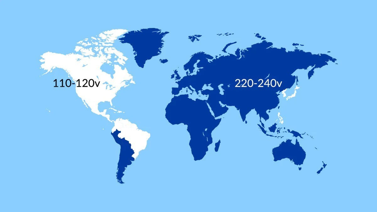View the map below to find the proper voltage for your next travel destination.