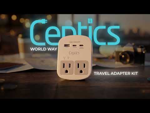 Standard:The Ceptics World-Way travel adapter kit features 2x US standard sockets, 1x USB-A, 1x USB-C and 1x PD 35W USB-C port and attached USB-C cable and SWadAPt™ - Swap N' Adapt compatible 6 interchangeable plug adapter attachments for use anywhere in the world. Charge up to 6 devices at once, surge protection and voltage indicator lights to show the socket's output voltage.